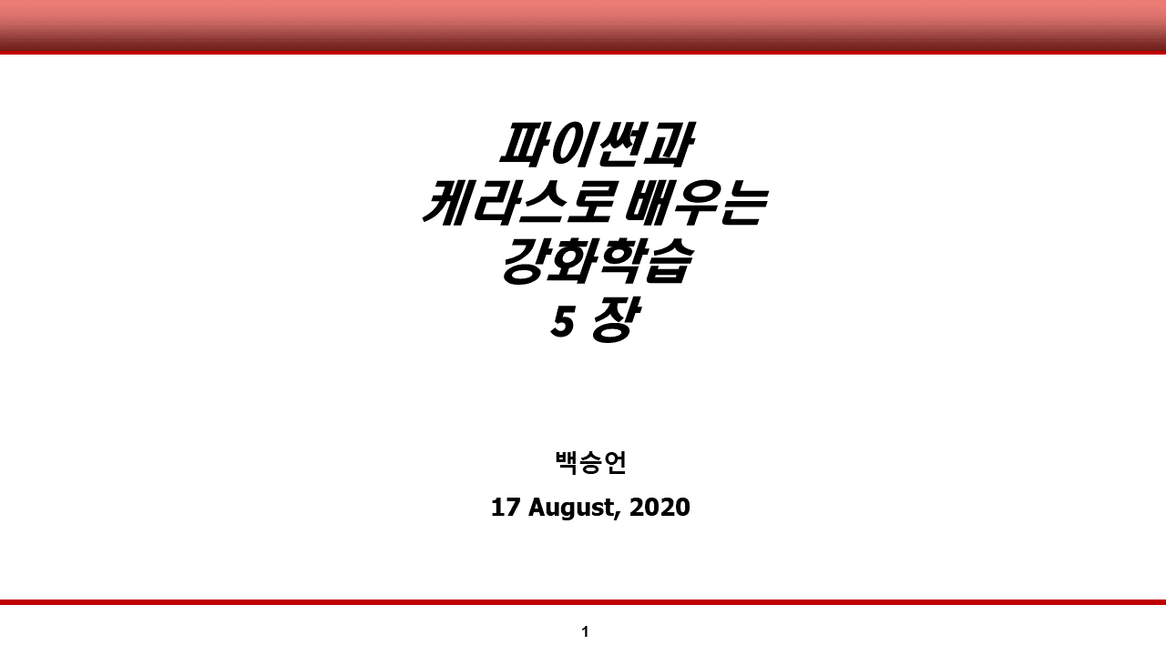 5장 강화학습 심화 1: 그리드월드와 근사함수는 제가 스터디를 리딩하였습니다. 밑의 자료는 제가 교재를 직접 공부하고 제작한 발표자료 입니다.