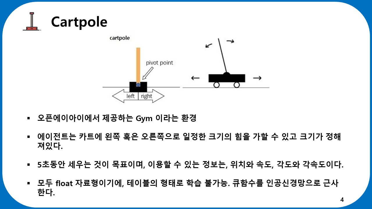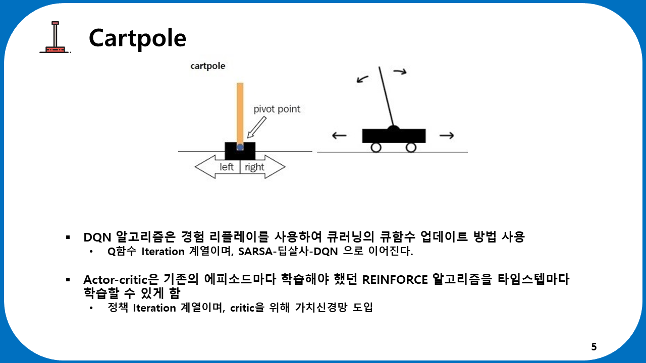 6장 강화학습 심화 2: 카트폴은 김응현 학생이 스터디를 리딩하였습니다. 밑의 자료는 김응현 학생이 직접 공부하고 제작한 발표자료 입니다.