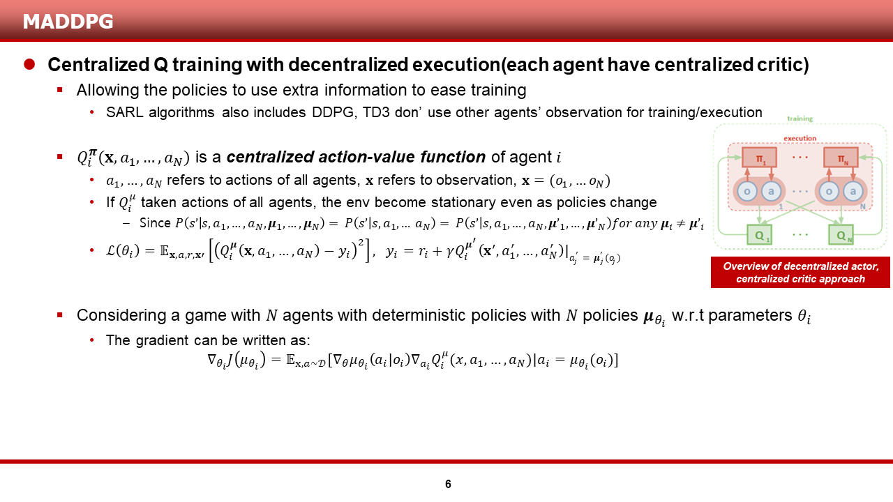 유사한 이유로, MADDPG도 이번 글에선 생략하고 넘어가도록 하겠습니다.