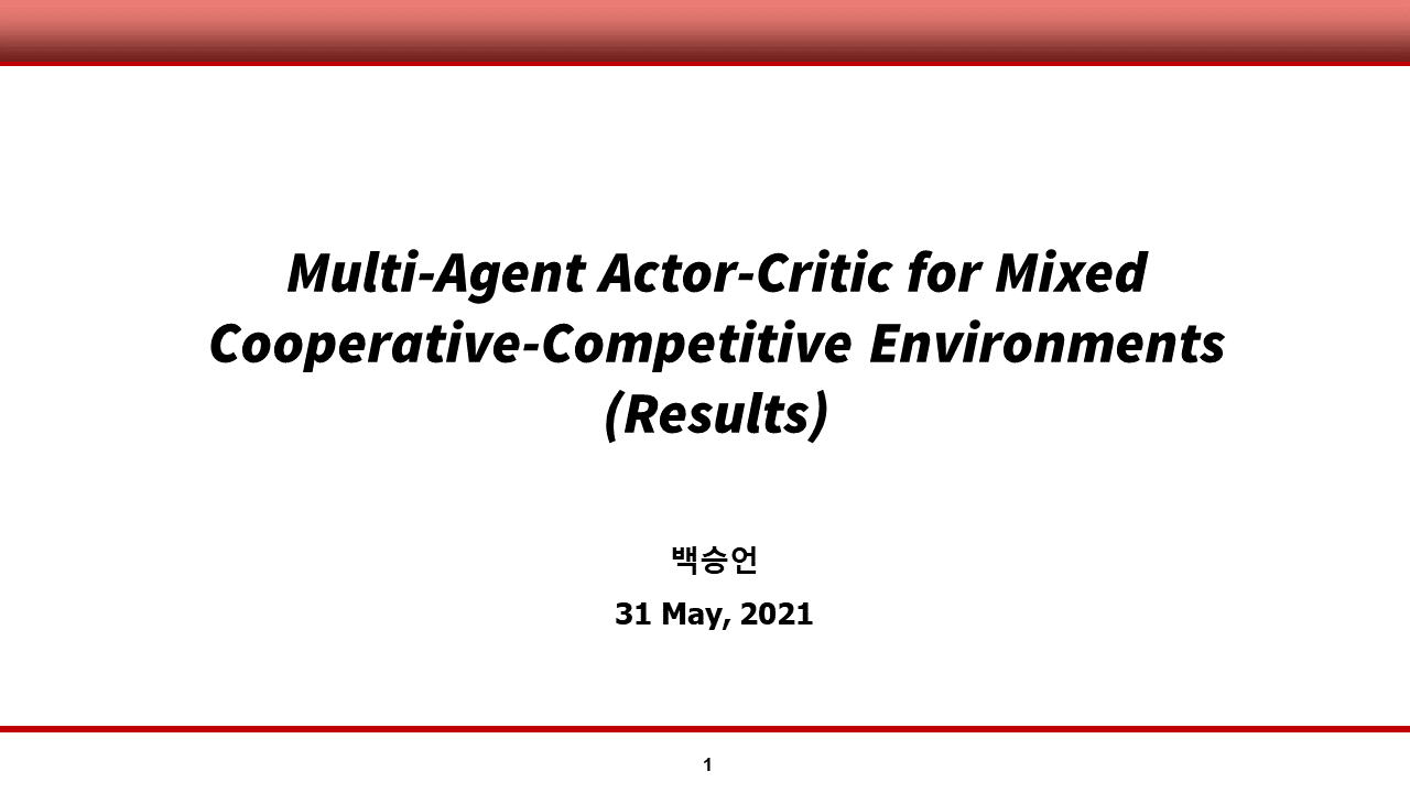 논문의 제목은 다시 보아도 직관적입니다. 협력적이거나, 경쟁적인 행위들이 섞여있는 혼합 환경에서의 Multi-agent actor-critic 알고리즘에 대해 다룰 것만 같은 이 느낌.. 넘어 가겠습니다!