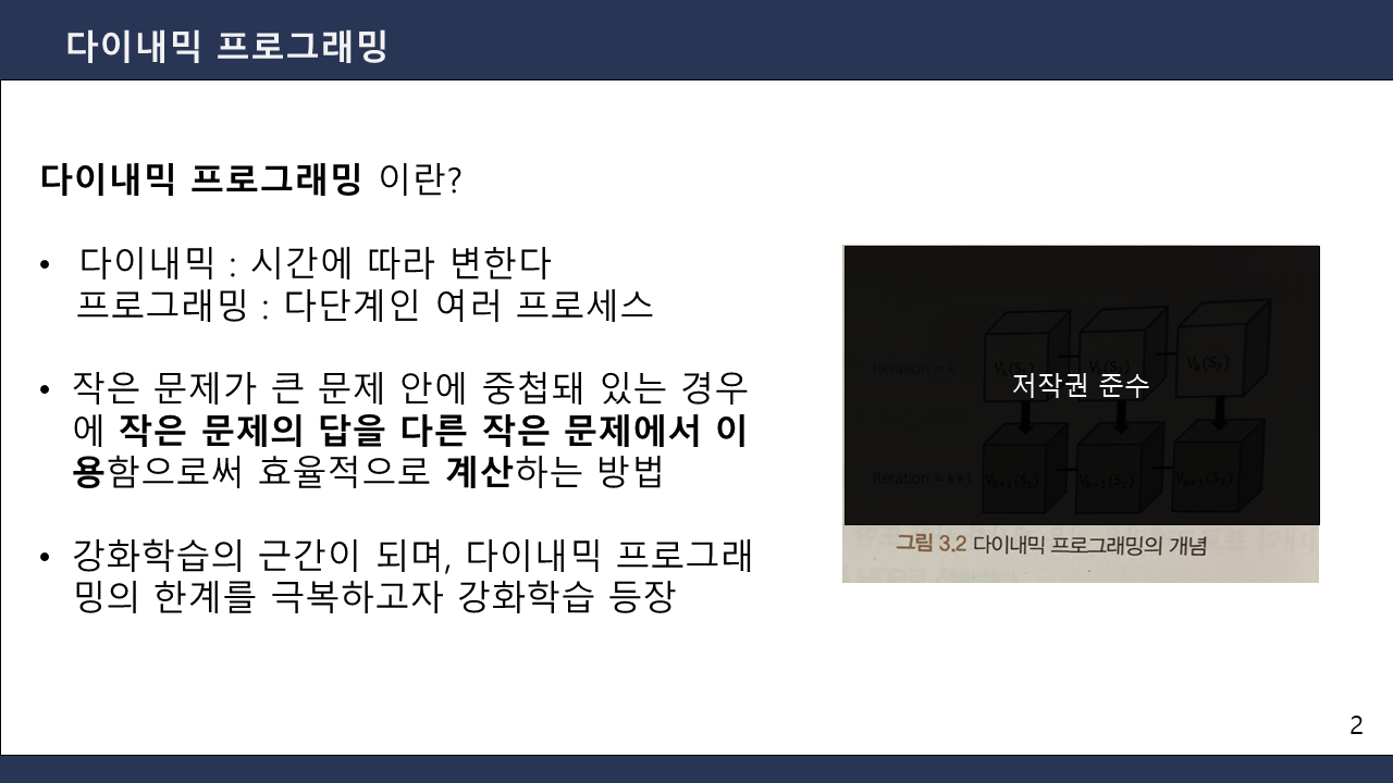 3장 강화학습 기초 2: 그리드월드와 다이내믹 프로그래밍은 곽지섭 학생이 스터디를 리딩하였습니다. 밑의 자료는 곽지섭 학생이 직접 공부하고 제작한 발표자료 입니다.