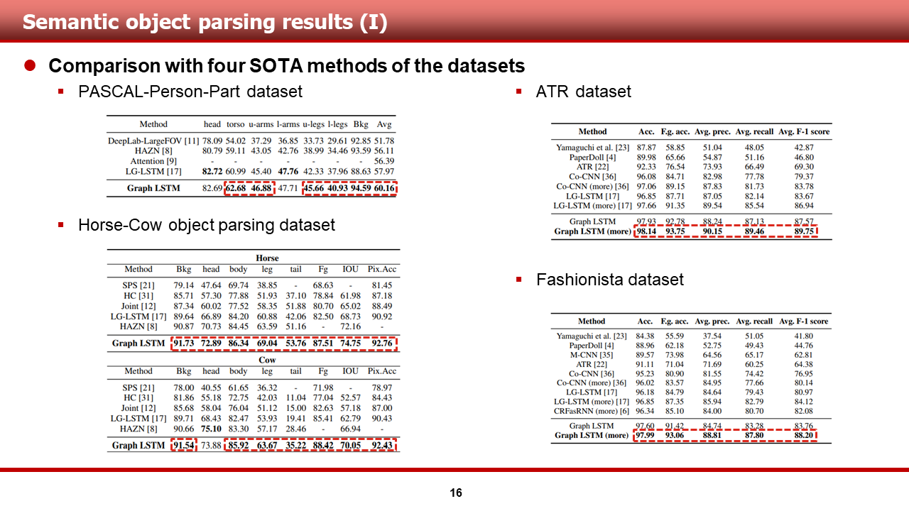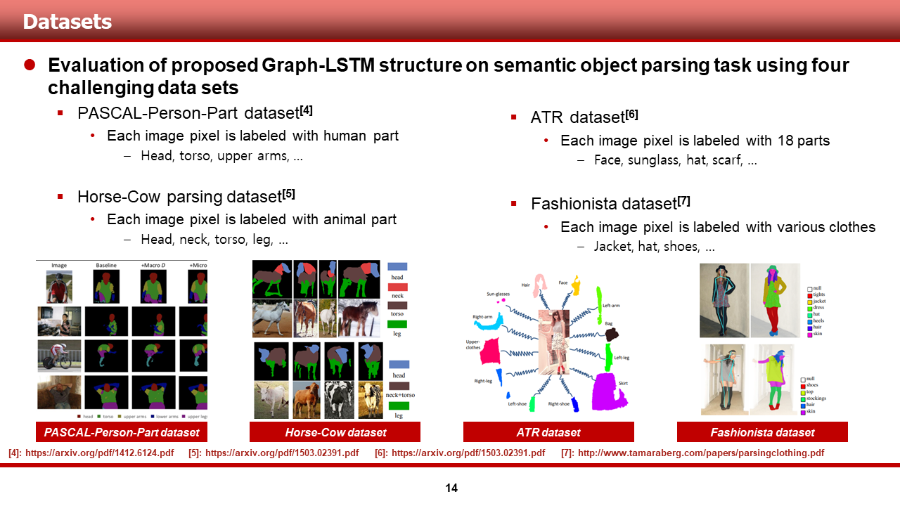 마지막으로, 실험 결과 부분에서는, Graph LSTM 논문에서 해당 task를 위해 사용된 데이터 셋에 대한 설명과, 실험 결과, 그리고 저자들이 수행한 ablation study에 대해서도 공유드리고, 발표를 마무리 짓겠습니다.