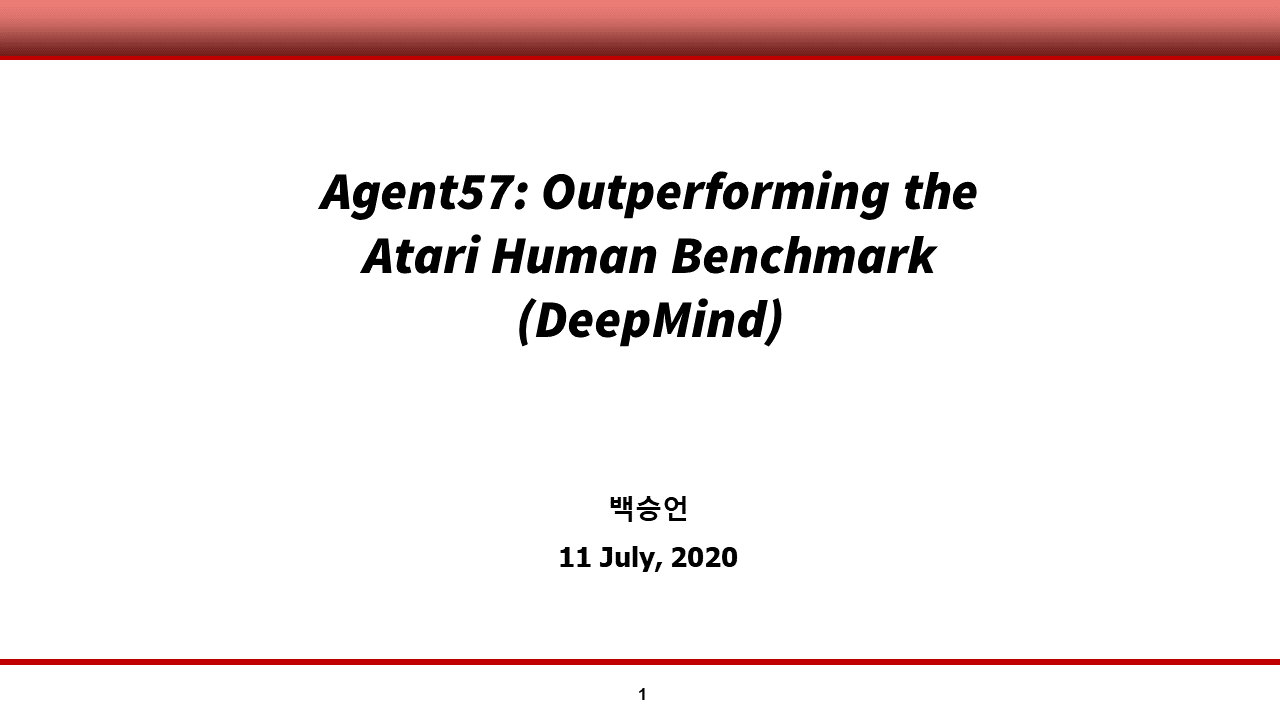 | Paper review of RL (2) Agent57: Outperforming the Atari Human Benchmark (DeepMind "Agent57") (0) | 2020.09.19 |