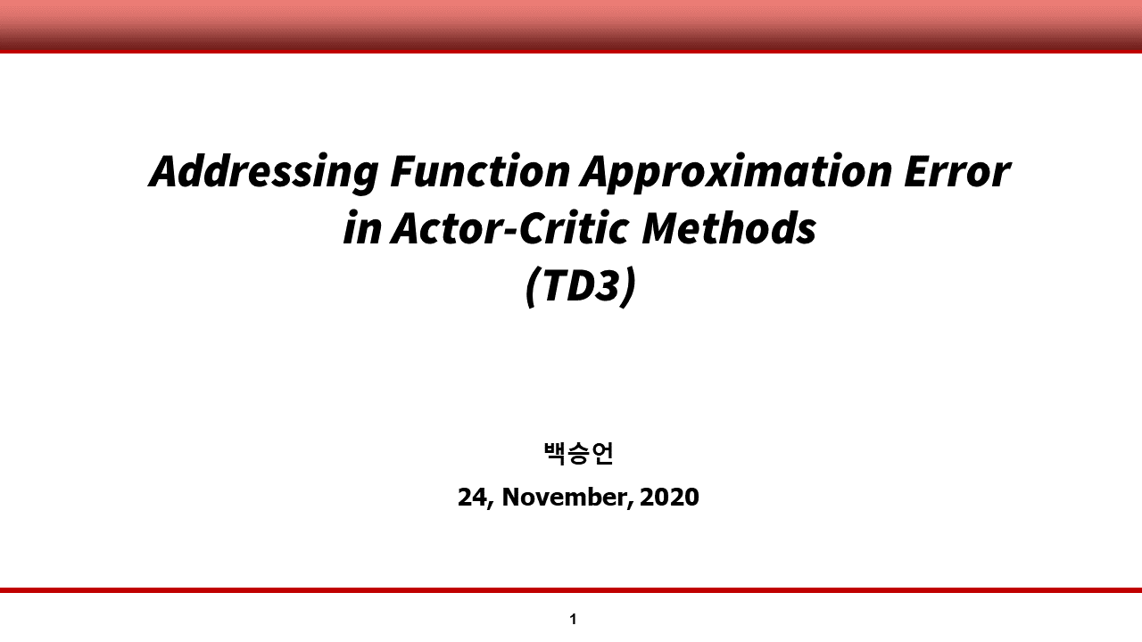 논문의 제목은 직관적이지는 않습니다. "Actor-Critic Methods 에서 발생하는 function approximation error를 다스리기"이지요.