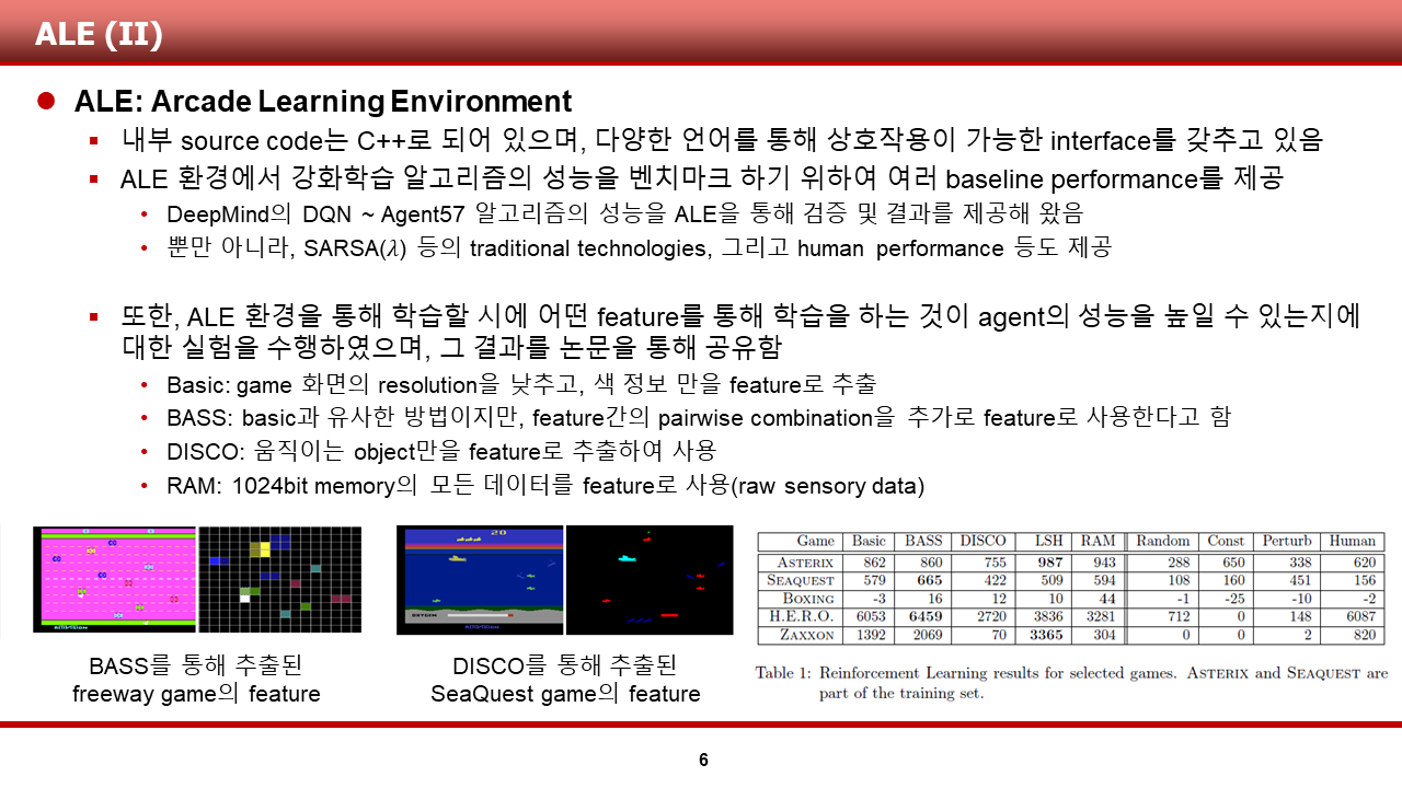 또한, 이 논문에서는, ALE 환경을 이용하는 연구자들이 학습을 더욱 수월하게 진행할 수 있도록, ALE에서 어떤 feature를 통해 학습하는 것이 성능이 좋았는지에 대한 case study를 수행하여 그 결과를 공유해주고 있습니다. 저는 저자들이 어떠한 case를 수행했는지에 대해 간단히 설명드리겠습니다.